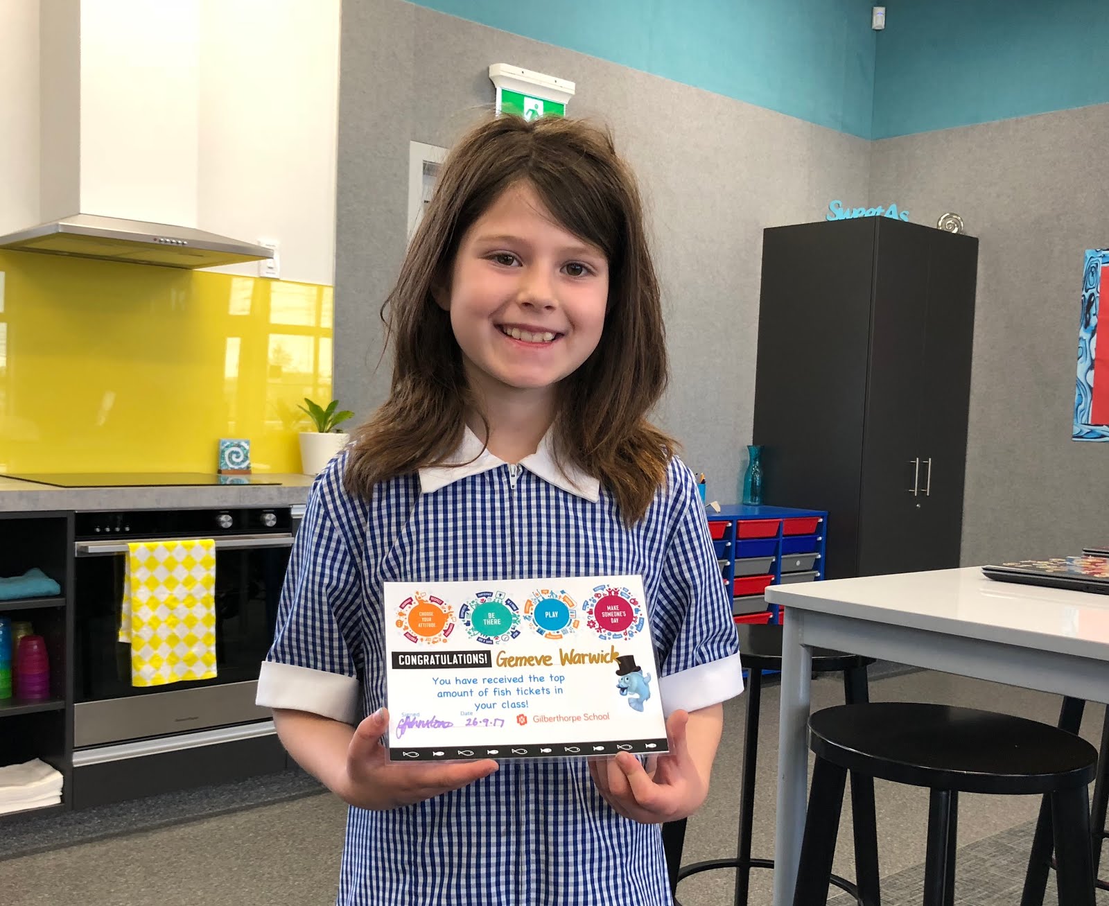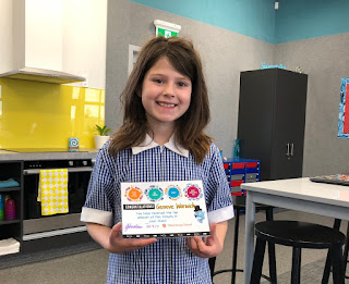 So we have counted up all of our fish tickets for the term... it was a close race but the lucky Gemeve came out on top. Unfortunately she was away for our Fish Assembly yesterday but we presented her with her award in class this morning.