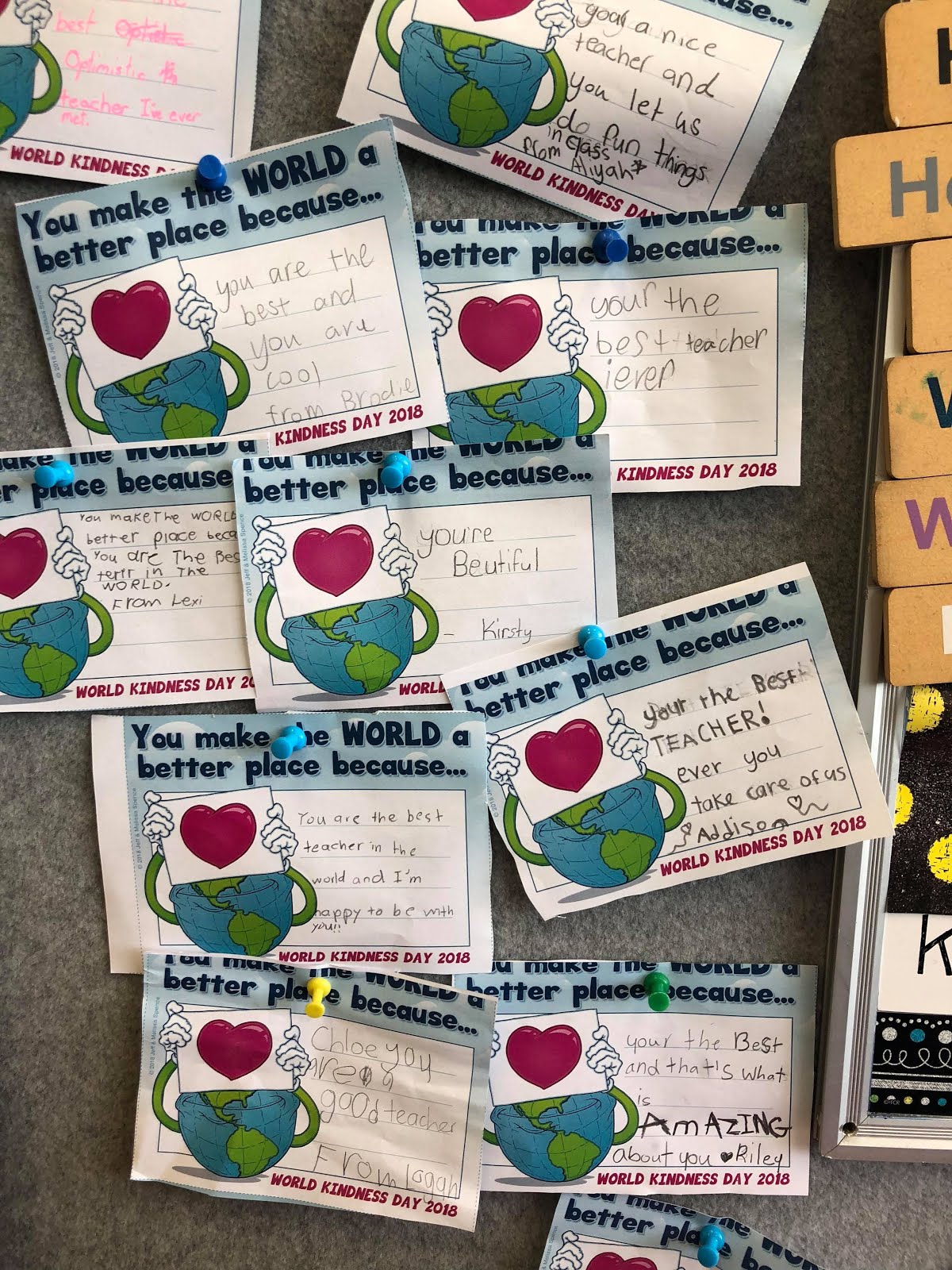 We spent some of the day filling out kindness cards and delivering them around the school. We wanted to tell people (our friends, family, teachers) why they make the world a better place. It made us feel special and happy when we got delivered a card.