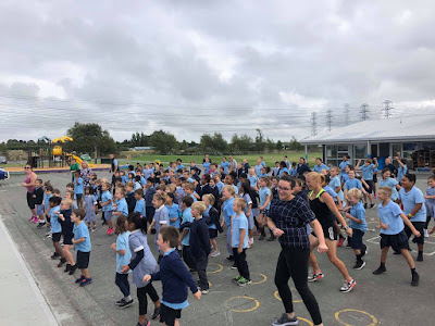 Brett Fairweather came into Gilberthorpe School last Wednesday. He had the whole school on their feet practising their Jump Jam moves. It was such a great way to begin our day. He even got the teachers on stage to help him out with the Coconut song. Miss Johnstone used to practise that in her lounge quite some years ago so it was a dream come true meeting the man himself!